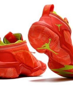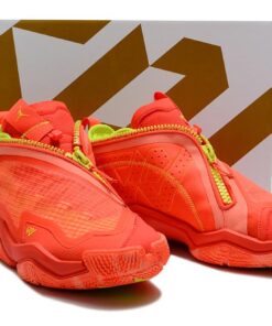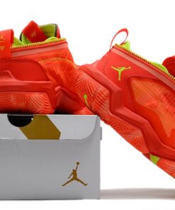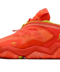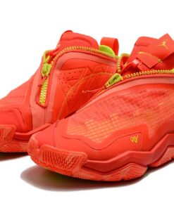 The Brodie’s latest signature silhouette is showcased in a Red and Yellow color scheme. Features that we see include a semi-translucent grid-layered upper paired with reinforced leather overlays. Uppers have been materialized with a ripstop shroud that starts on the medial panel and zips up toward the tongues. If you peek closer at the open parts of the zipper that rest around the ankle, you’ll notice that they feature repetitive “Why Not” letters to nod to the triple-double machine’s motto. In terms of branding, Jordan logos are positioned on the lateral heel and tongues while the LA native’s personal logo arrives in a smaller, embroidered fashion on the forefoot and in perforated mesh on the medial wall.