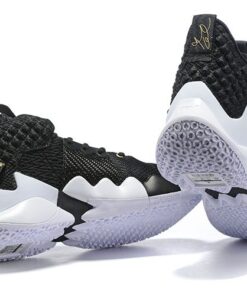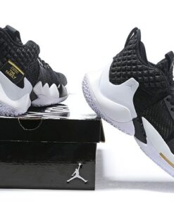 Dressed in a clean Black and White color scheme. The basketball silhouette features an all-Black upper sitting atop a clean White rubber sole. Highlighting the release are Gold accents on the branded areas as well as the back heel label that reads “The Family.”