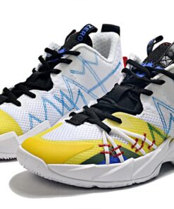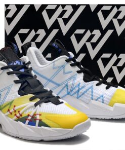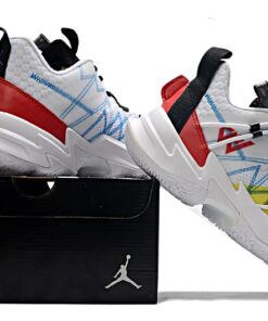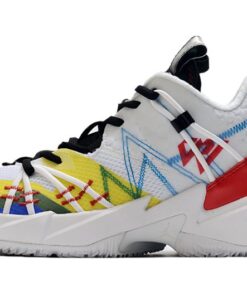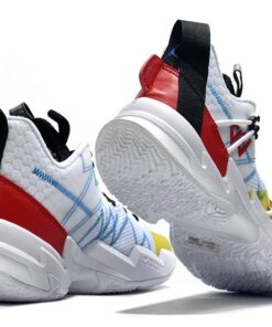 The raw, blueprint-like writing on the shoe draws from the Red lining made by footwear designers during the pattern trial process. Each color represents a professional team that Westbrook has played for.