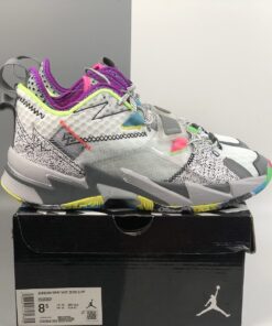 Aesthetically, these hardwood-ready sneakers are as flashy as every characteristic of the All-Star point guard’s persona. The debut colorway fittingly dubbed the “Zer0 Noise” speaks to Westbrook’s always on mentality of drowning out all the distractions and doubt thrown his way. A plethora of vibrant colors scattered upon its upper get blended with black/white overlays placed towards the forefoot and heels drawing close connections to the moment your television goes wild with static noise.