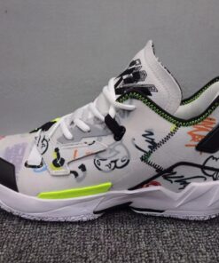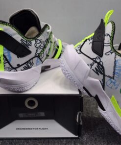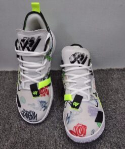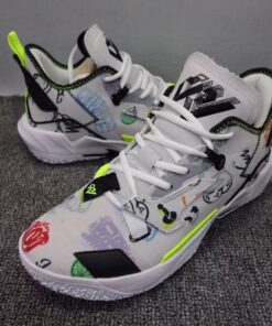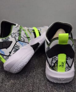 This Why Not Zer0.4 features a White upper as its canvas fully covered in illustrated graphics. Transparent TPU overlays, Black detailing with added Volt contrasting accents throughout. Branded tongues and insoles with signature printed on the heels atop a White and Black rubber sole completes the design.