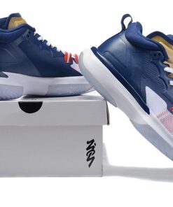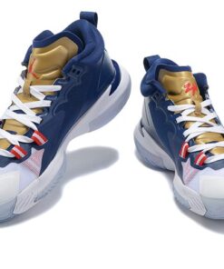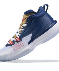 Dressed in a Blue Void, White, Metallic Gold, and University Red color scheme. The Jordan Zion 1 kicks off his signature line with a design inspired by his duality of humility meets superhuman ability. Full-length Air Strobel cushioning is stacked with a Zoom Air unit in the forefoot—a sensational mix of plush underfoot comfort and rapid responsiveness. It’s light, stable and strong, with aggressive traction to help Zion grip the court and control his power.