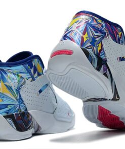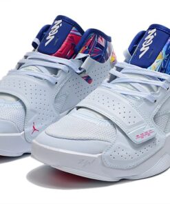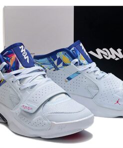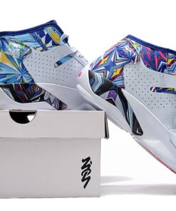 Shown here is a first look at the Jordan Zion 2 that surfaces in a White colorway highlighted with a multicolored design on the tongue, ankle, and heel areas. Other details includes 90s-inspired Zoom Air forefoot straps, Zion’s signature logo at the tongues with his initials carved into the toe of the outsole.