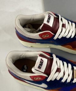 The Kasina x Nike Air Max 1 Won-Ang celebrates both Kasina’s 25th Anniversary as well as the 35th Anniversary of the Nike Air Max 1. Arriving in two different colorways, both pairs are inspired by sentiments of Won-Ang ducks. The sneakers are constructed in a mix of premium leather, suede, and pony hair materials. Design details include the flower on the mini Swoosh on the lateral toe, the Kasina branding on the tongue tags and the wooden lace dubraes. Sail-colored midsoles and an icy translucent outsole round out the main features of the sneakers. The Teal, Orange and Brown colorway opts for a color blocking of a mandarin duck hence the matching duck-shaped hang tag. In Korean culture, mandarin ducks carved from wood, known as kireogi, are paired together and often given as marriage gifts because it is believed that, unlike other types of ducks, they mate for life, and that if one of the pair dies, the other will mourn. Kasina uses kireogi and marriage as a way to celebrate their anniversary and the theme of “better together.”