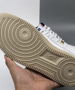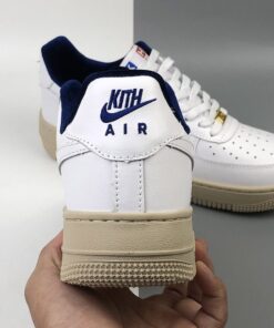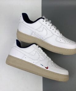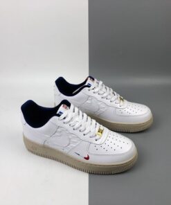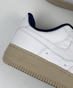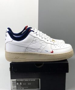 Inspired by the France flag, this Nike Air Force 1 Low features an all-White premium leather upper with Navy velvet lining and tri-colored embroidered mini toe Swoosh. The flag is used for the tongue label which also features Kith branding. The quarter panels are debossed with Kith’s monogram pattern atop a Beige vintage sole unit. Other details include special Kith Air logos, a reimagining of the Nike Air logo, embroidered on the heel tabs and printed on the insoles.