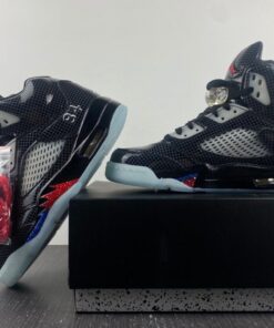 The build of this Air Jordan 5 if very similar to the Doernbecher release that includes the year ’84 embroidered on the sides as a nod to when the first episode of Transformers premiered. Other details include Optimus Prime’s colors on the Jumpman tongue and shark teeth overlay sitting atop a glow-in-the-dark translucent outsole with the Transformers logo on the forefoot.
