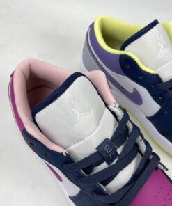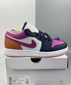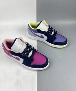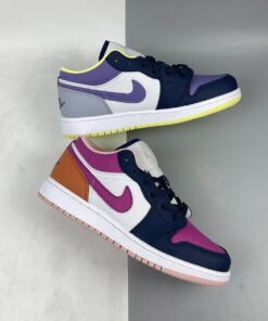 Stand out from the crowd with these unique Mismatched Air Jordan 1 Low sneakers in Purple and Magenta. These eye-catching shoes feature a mix of colors on each shoe, adding a fun and playful twist to a classic silhouette. Perfect for sneakerheads looking to add a bold statement piece to their collection. Get your hands on these one-of-a-kind kicks today!