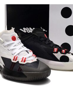This Jordan Zion 1 features a white toe and outsole of the left shoe contrast with the black of the right, and the former boasts a mottled pattern that the latter does not. The insoles are also mismatched, with a paisley print and solid color Jumpman signature that comes in white and black throughout the pair. Lastly, the Symmetrical black back panels finish the look.
