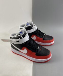 This offering of the Nike Air Force 1 High sports a classic Black, Chile Red, White, and Sail color blocking built with a mix of smooth and tumbled leather. Special callouts for the celebration are detailed on the tongue tags and diamond-etched lace dubraes, as well as special packaging for each pair.