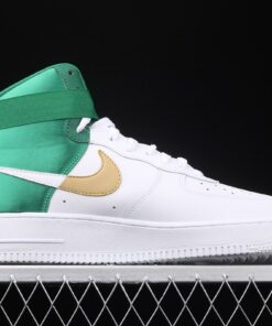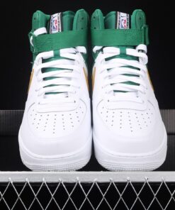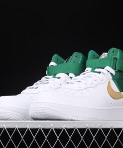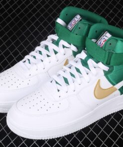 Following a look at the “Lakers” and “Clippers” offerings, we now share one dressed in “Celtics” colors. This offering features a White leather upper with Green nylon on the heel, collar and strap. The panel Swoosh is half-dipped in Gold and White completed with co-branded NBA and Nike Sportswear branding on the tongue and heel taping.