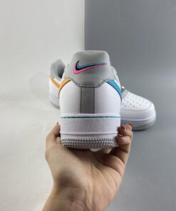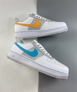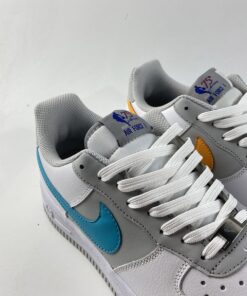 This offering of the Nike Air Force 1 honors the popular “Fiesta” uniforms from the 1996 NBA All-Star Game in San Antonio. It features a White and Grey leather base highlighted with Teal, Orange, and Pink contrasting accents on the sides and heel Swooshes. Special callouts for the celebration are spotted on the tongue labels and diamond-etched lace dubraes.