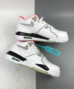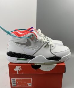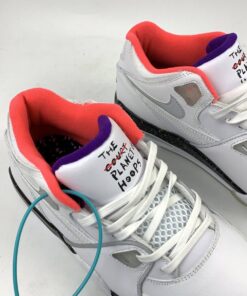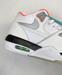 This offering of the Nike Air Flight 89 comes in a intergalactic theme featuring a White leather upper paired with Purple and Infrared liners along with a speckled midsole. Highlighting the shoe are 3M reflective and glow-in-the-dark details completed with branded tongues on both sides, heels, and graphic insoles.