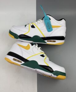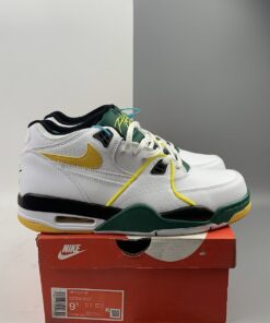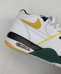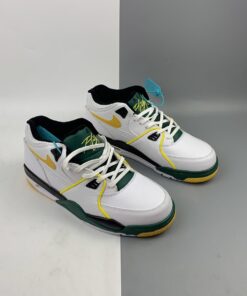 Dressed in a White, Del Sol, Fir, and Black color scheme. This latest offering of the Air Flight 89 features a White leather base with Yellow and Green contrasting accents throughout. Other details includes Black detailing on the lining, tongue, heel, and insoles completed with a White/Yellow rubber sole.