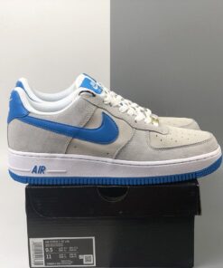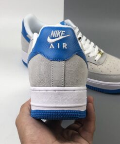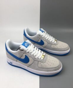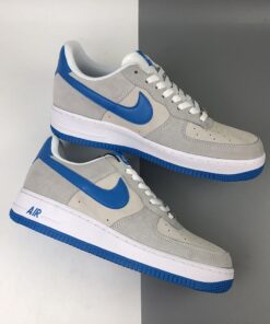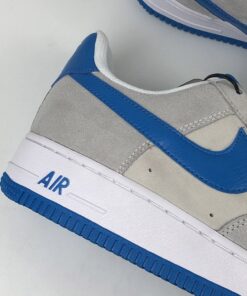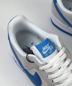As you can see this Nike Air Force 1 Low features a Grey Fog, Light Photo Blue and White color combination. Highlighted with White leather across the upper while Grey suede lands on the overlays. Finishing the look is Photo Blue on the Swoosh, tongue label, heel, ‘AIR’ on the midsole and rubber outsole.