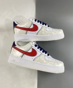 While the Air Force 1 is no stranger to snakeskin and other exotic prints, this iteration arrives in an all-white base leather base with snakeskin motifs slithering across the toe boxes, ankles, and heels. Additionally, the offering includes hues of university red and navy on the Nike Checks and heels, followed by hints of green. For the finishing elements, the design features 3M detailing throughout the upper, along with jewel lace dubraes reading “AF-1 82” and “Just Do It.”