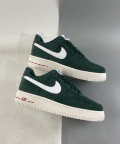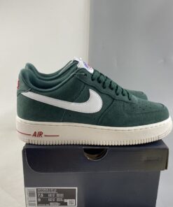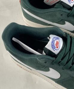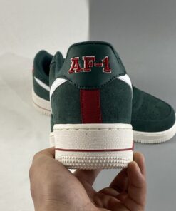 As a whole, the package is objectively simple, combining only a few colors and materials. Throughout the suede upper, a dark green is used primarily, with white hits arriving by way of the tongue label and Swoosh. The red branding at the heel, compared to the “Athletic Club” markings elsewhere, adds a bold but still on-theme addition, spelling out “AF-1” in thick, collegiate-styled embroidery.