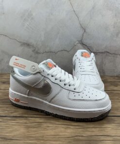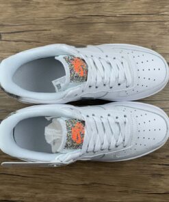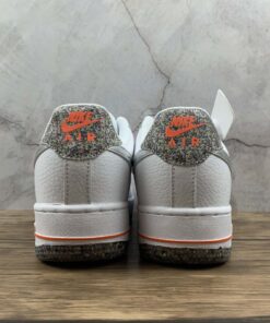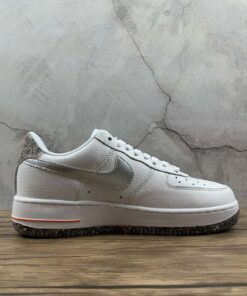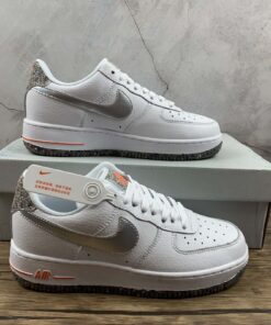 This Nike Air Force 1 Low comes dressed in a Summit White, Metallic Silver and Laser Orange color combination. Utilizing White tumbled leather across the upper, Silver on the Swoosh logos across the panels and Orange accents. Crater Foam, which is a material made from Recycled Grind fabrics and is used on Space Hippie releases, is used on the tongue, heel and outsole.