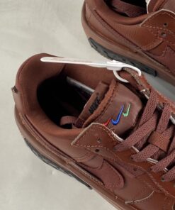 One of the silhouette’s more straightforward offerings, the pair applies “Burnt Sunrise” throughout many of its parts. Both the leather base and suede accents atop are rendered in the exact same shade, appearing different only due to their respective textures. Black adds a bit of contrast to the midsole via the React foam black, while the tongue deviates further with its red, blue, and green Swooshes.