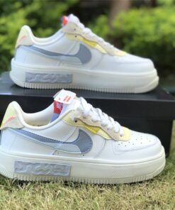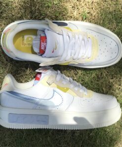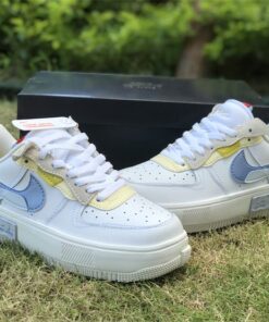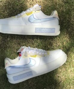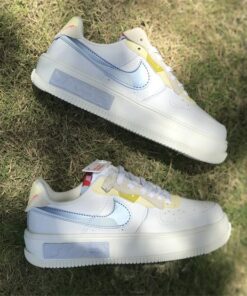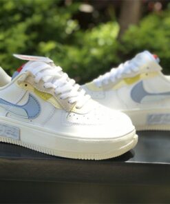 This pair comes in a pearl white and a tan titular hue is used throughout the shoe, dressing the toe, heel, and many of the fixtures in between. Haphazardly”-shaped panels cover the entirety of the leather upper, while non-standard suede overlays add personality to the tongue’s sides and upper heel section. Profile swooshes and the Nike React foam protruding at the sides of the midsole underfoot deviate from their predominantly-“White” surroundings in a spring-ready blue.