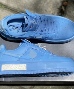 As most of you know by now, this Fontanka rendition of the Nike Air Force 1 Low opts for a vintage feel from top to bottom. Design details on the Fontanka model include the lifted midsole and layered upper constructed out of a soft leather, suede and intricate stitching. The signature “cassette tape” on the ultra-soft React foam in the heel round out the main features of the sneaker. This makeup of the model dons a University Blue hue throughout with the exception of the aforementioned signature “cassette tape” done in White.