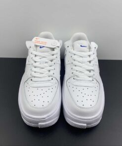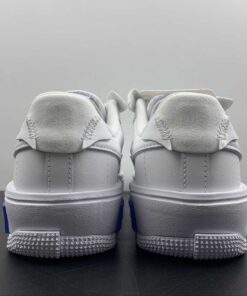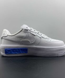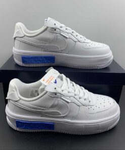 This AF1 Fontanka is mostly dressed in White and Summit White with a mix of smooth leather and suede. Sporting a layered aesthetic, you’ll find doubled eyelets and double stitching on the shoe. The doubled tongue shows off a University Blue Nike logo and the three Fontanka Swooshes in red, blue and green. A lifted midsole with a “cassette tape” of ultra-soft React foam and a stylish split outsole finish off the look of these kicks.