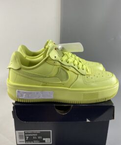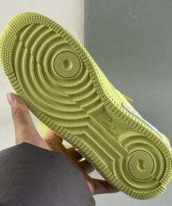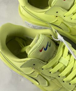 Dressed in a Yellow Strike and Light Lemon Twist color scheme. This offering of the Nike Air Force 1 Fontanka features a full Lime Light upper built with a layered aesthetic. Red, Blue, and Green mini embroidered Swooshes on the tongues, a White “cassette” Nike React cushioning in the heel replaces the ZoomX that was used on the Fontanka Edge atop a solid Lime rubber sole completes the design.
