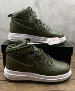 Dressed in a Medium Olive, Seal Brown, and Sail color scheme. This Nike Air Force 1 Boot features a Gore-Tex waterproof leather constructed upper with Gore-Tex branding on the lateral heel and insoles. A Sail midsole atop an Olive traction rubber outsole completes the design.