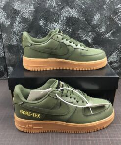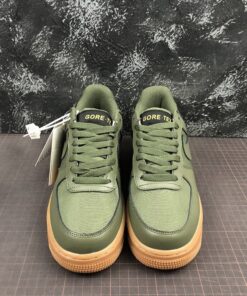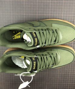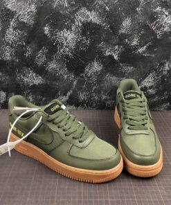 Painted in a military green throughout, the upper works on a ballistic nylon mesh base for extra breathability, while premium full grain leather panels feature throughout for added luxury. The interior of the Air Force 1 Low WTR Gore-Tex Green is lined with Gore-Tex fabric for better water resistance, and this is emphasised through striking yellow “Gore-Tex” branding at the lateral heel and tongue.