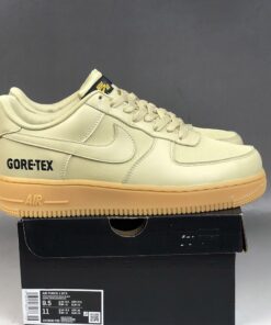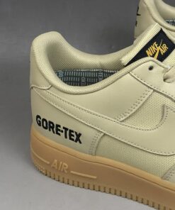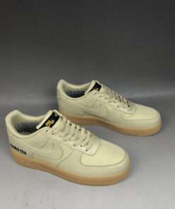 Nike has provided a near-ideal option with a new Gore-Tex equipped take on the Air Force 1 Low in “Team Gold.” As the Air Force 1 is an inherently rugged silhouette by nature, equipping it with Gore-Tex’s ready-for-anything technical fabrics is an entirely sensible maneuver by the Swoosh Brand, and here the Bruce Killgore-designed classic is constructed with a mix of leather and tightly-woven mesh, all dressed in a soft gold tone. The hardy nature is played up by rope laces and a bold black embroidered hit on the lateral heel, with a grey midfoot Swoosh and Nike Air hit on the rear providing signature branded flair. The tongue offers a mix of black and gold, while down below the midsole and outsole both take on a more metallic gold hue for an interesting tonal contrast.