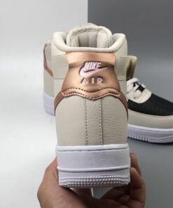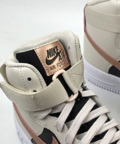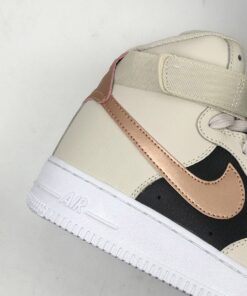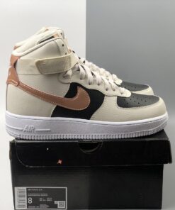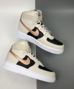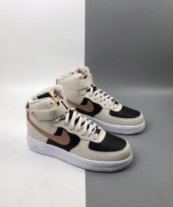 This offering of the Air Force 1 High features a Black tumbled leather on the toe and side panels paired with Beige overlays. Finishing touches includes Copper Swooshes and tongues completed with a solid White rubber sole.