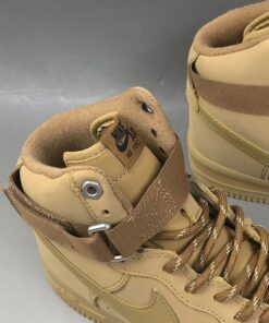 With its beefy shape and high-cut upper, the AF1 High is arguably the easiest pair of Nike shoes to apply a boot-style makeover to, and here the entirety of the shoe is covered in the seasonally-appropriate tan tone. The upper is made of nubuck, while the tongue, throat, and proprioceptus belt — or strap, in layman’s terms — are made of a rugged tan fabric. Further boot-style detailing then arrives via flecked rope laces and silver detailing that graces both the top eyelet and the strap’s hook-and-loop closure, adding an extra dash of flair.