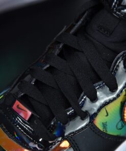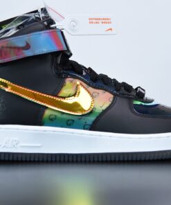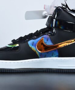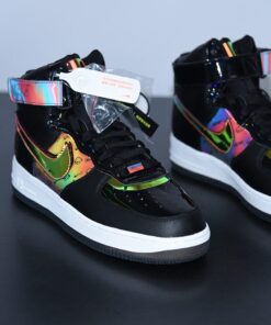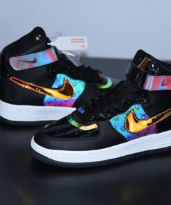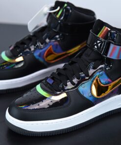 This offering of the Nike Air Force 1 High comes constructed in a mix of patent leather, smooth leather, velcro Swooshes, and iridescent finishes. Repeated Nike branding on the panels, “Have A Good Game” glazed on the lateral heel atop a White midsole and translucent outsole completes the design.