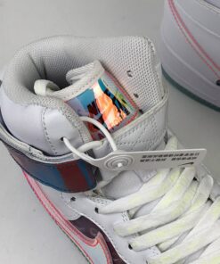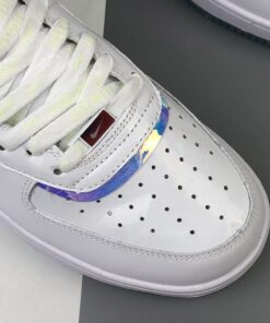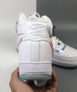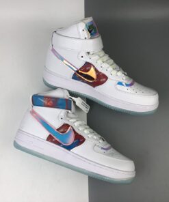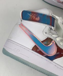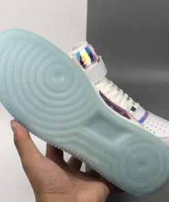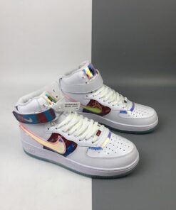 The overall look of this Nike Air Force 1 High resembles that of the previously shown while using patent leather, smooth leather, velcro Swoosh logos and iridescent throughout. Moving towards the lateral side we have ‘Have A Good Game’ branding which is used across the collection as well as repeated Swoosh logos on the branding. Finishing the look is a White midsole and an icy translucent outsole.