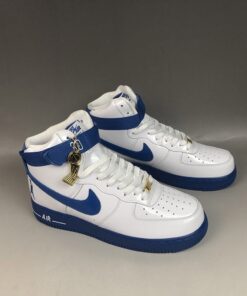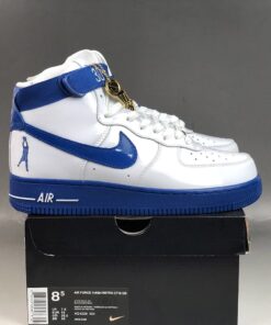More specifically, Nike chose to honor Wallace’s 26 point, 13 rebound performance in Game 4 of the 2004 NBA Finals against the Los Angeles Lakers. This colorway of the Air Force 1 High covers the upper in a white patent leather with royal blue accents on the Swoosh, midsole, strap, and heel tab.