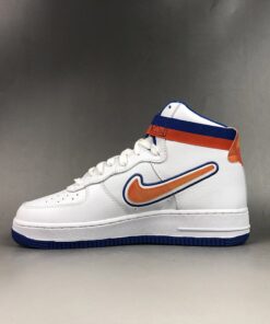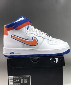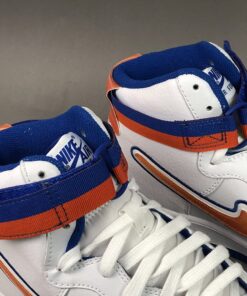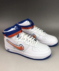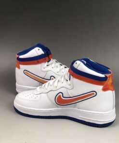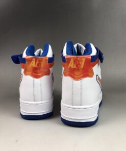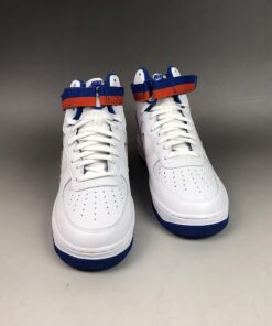 Dressed in a White, Team Orange, and Game Royal color scheme. This Nike Air Force 1 High features a White tumbled leather upper with Orange and Royal Blue accents including a two-tone ankle strap. Finishing off the design is the series signature logo branded heel tab.