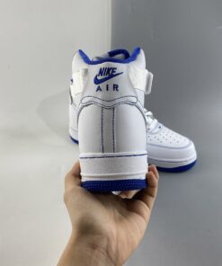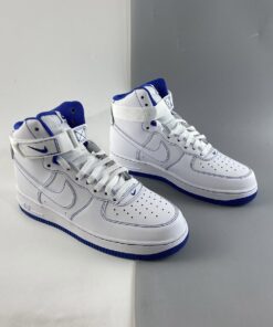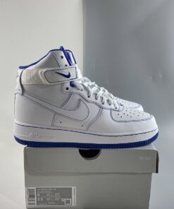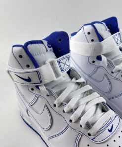 For a signature touch, Nike’s legendary Swoosh logo shoots across the lateral and medial side panel where it then elegantly reunites at the heel. Accentuating the pair overall are vivid blue threads that run across the entire structure, a blue sock liner and durable rubber outsole attached to an Air infused chunky midsole even adds more contrast to the design.