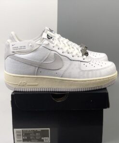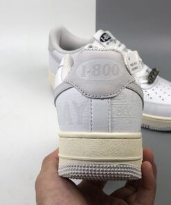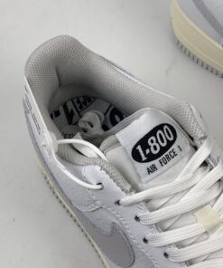 ‘1-800’, ‘Call Today’ and ‘Toll Free’ texture this AF1 silhouette. Nike have opted for this detail to remain white to allow for subtle contrast across the leather panelling. A grey Swoosh and complementing heel, once again reading ‘1-800’, tie in nicely with the cream-coloured midsole. The sneak is then finished up with a crisp white rubber sole providing comfort and bounce, all in all giving a clean, well-structured colourway.