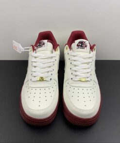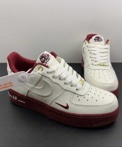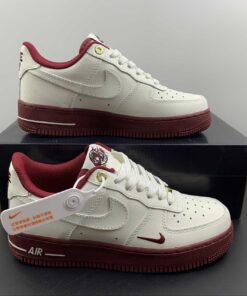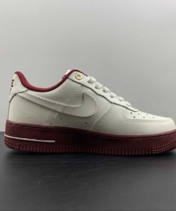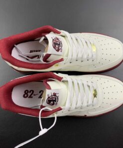 This Nike Air Force 1 Low gets blanketed in a cream tumbled leather construction all over the upper with tonal detailing on the Swooshes, tongues, and laces. For some color we see the addition of Team Red on the inner liners, tongue and heel branding, and the entire rubber sole unit. Standout details include special “1”-branded tongue tags, “82-22” insoles, debossing on the lateral ankle, Bruce Kilgore’s signature behind the tongue tags, and Metallic Gold dubraes and upper eyelets.