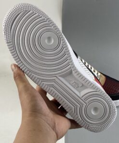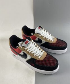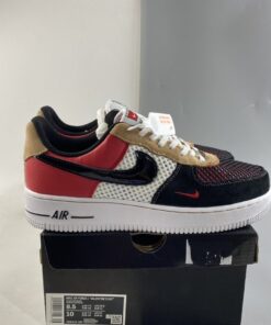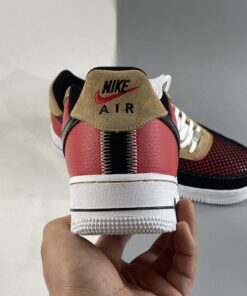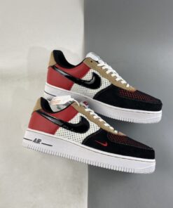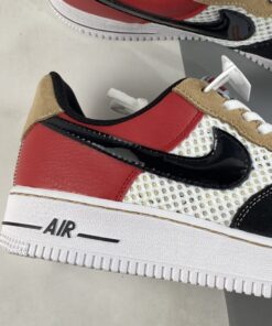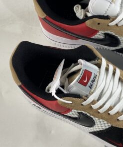 This piece of the collection offers a dynamic Air Force 1 Low that features panels of suede and mesh. The toe box and lateral quarter of the sneaker are covered with wide-knit mesh that is designed to catch and tear as you wear your sneakers. Navy suede and Red leather cover the overlays, with tan suede on the eyestay. Finishing details include a black patent leather Swoosh and a black “AIR” stripe on the midsole.