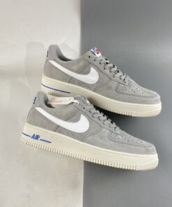 Dressed in a Light Smoke Grey, White, Sail, and Hyper Royal color scheme. This offering of the Nike Air Force 1 Low features a suede base with leather Swooshes and heels along with mesh tongues. A retro-inspired Nike Athletic Club tongue tags and insoles with a new “AF-1” branding on the heel panel completes the design.