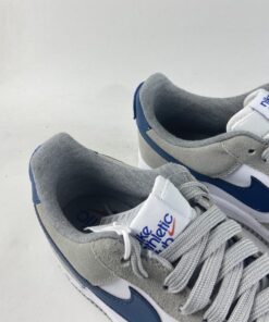 The Nike Air Force 1 Low “Athletic Club” comes in a white leather base with hues of grey on the toe box, eyelets, and overlays. Additionally, the smoke grey shade reappears on the sock liner and insoles. Elsewhere, the pair features marina blue Nike Checks followed by sew-on “Athletic Club” patches on the heel.” Other key motifs are “Nike athletic club” labeling on the tongue and insole. Concluding, the offering is a white and grey rubber sole.