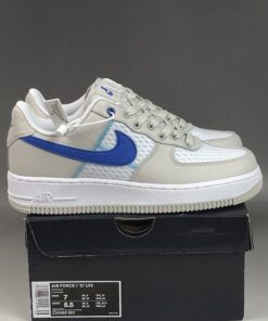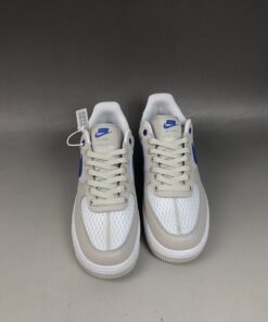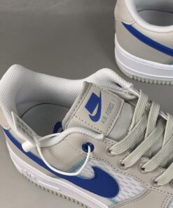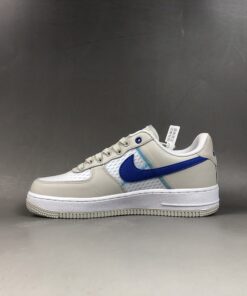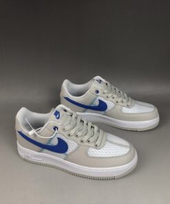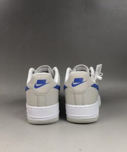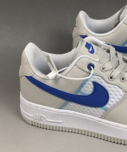 Specifically, this Nike Air Force 1 Low comes dressed in an Atmosphere Grey, Racer Blue and Vast Grey color combination. Utilizing White mesh on the panels and toe box while Grey lands on the overlays. Following we have Racer Blue used on the Swoosh logo and tongue branding while a lighter shade of Blue is seen in a zig-zag pattern.