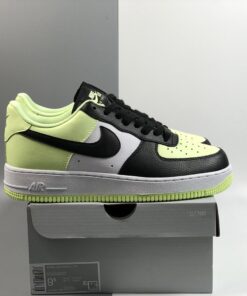 This Nike Air Force 1 Low comes dressed in a Barely Volt, Black and White color combination. Utilizing tumbled leather throughout while Black lands on the overlays and White covers the panels and midsole. Wraps the heel, covering the toe, Nike Air branding on the tongue, liner and rubber outsole is Volt.