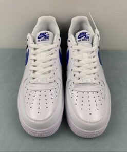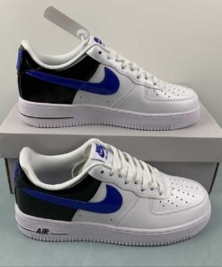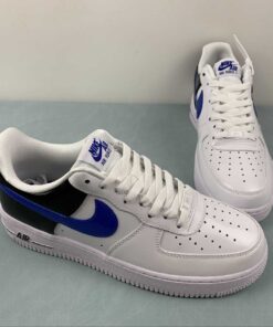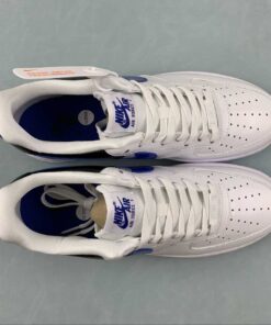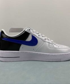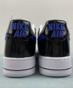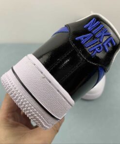Dissimilar to the remainder of the pair’s upper – which encourages a near all-white ensemble through crisp white smooth leathers and color-matched laces – the jet-black treatment of the heel’s patent leather construct provides a stark contrast to the surrounding colorless sock liner and tongue. Matching the glossy composition across its “Royal Blue” midfoot Swooshes, the latter shade further denotes its presence through the heel tab’s 80s-inspired embroidered “NIKE AIR” text and adjacently placed tongue tab. Underfoot, the trio of tones concludes with a clad-white sole unit accented by pitch-dark AIR branding.