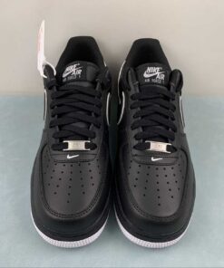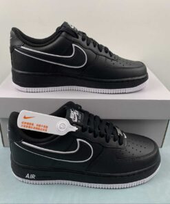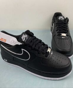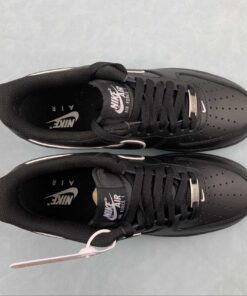 Infused with Black Air Force 1 energy, the entirety of the smooth leather upper and accented embellishments enacts a clad association of jet-black shades. Color matches along the collar lining and laces further imbue the synonymous “Triple Black” aesthetic while silver metallic dubraes anchor the pair’s OG interpolations. Elsewhere, the monochrome offering looks to an opposing slate of crisp white hues that outfit the tread and various Nike Air logos The colorless tint of the mid-foot Swoosh’s trim provides one last clarifying contrast amidst the simplistic, two-toned ensemble.