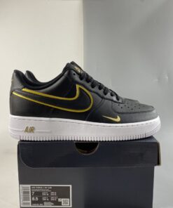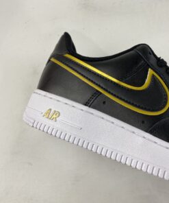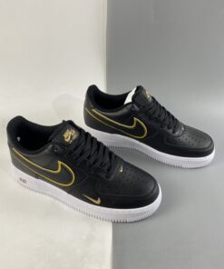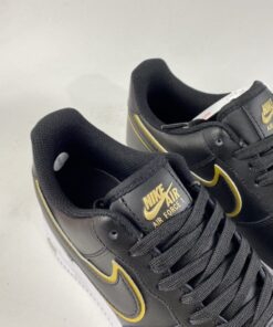 This Nike Air Force 1 Low comes with Black leather across the uppers while the same shade appears on the Swoosh logos and Metallic Gold underneath. More Gold hits the embroidered mini forefoot Swoosh, tongue, heel, insole, and midsole branding. Finally, a White sole finishes the look.