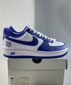 One of the pairs that’s part of the lineup is this Brooklyn Nets-themed edition of the Nike Air Force 1that includes the Nets’ logo appearing on the lateral heel. The shoe features a Grey base with Navy and White overlays along with Red branded heels and stitching on the White midsoles. Other details includes the NBA’s NBA’s 75th Anniversary branding on the tongue tag, special lace dubrae honoring the league’s Diamond Anniversary completed with a Navy rubber outsole.