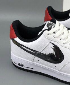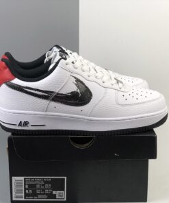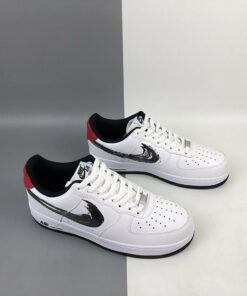 Crafted from premium white grained leather, the uppers take on the legendary panelled look and display classic details such as the perforated toe box and padded ankles. The Swoosh logo is featured in black, while red accents create a well-considered colorway and finish the look.