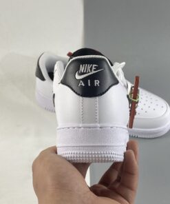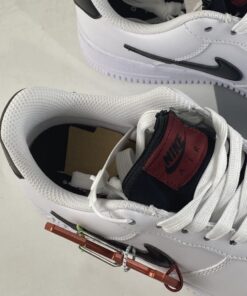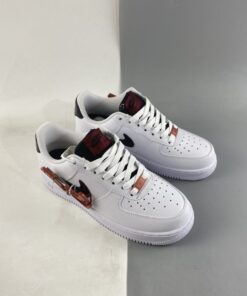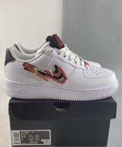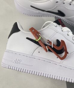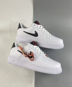 Dressed in a White, Black, Pomegranate, and Habanero Red color scheme. This offering of the Nike Air Force 1 Low features a White leather base with Black leather on the Swooshes and heels. Highlighting the shoe are its “Carabiner Swooshes” on the lateral side with zip-pocket tongues. A solid White AF1 rubber sole completes the design.