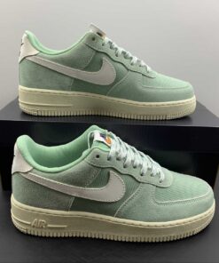 Dressed in a two-tone Enamel Green and Sail color scheme. This Nike Air Force 1 Low comes constructed with a Green canvas base paired with White laces, Swooshes, and heel tabs. Certified Fresh branding behind the tongue tags and insoles atop a Sail AF1 rubber sole completes the design.